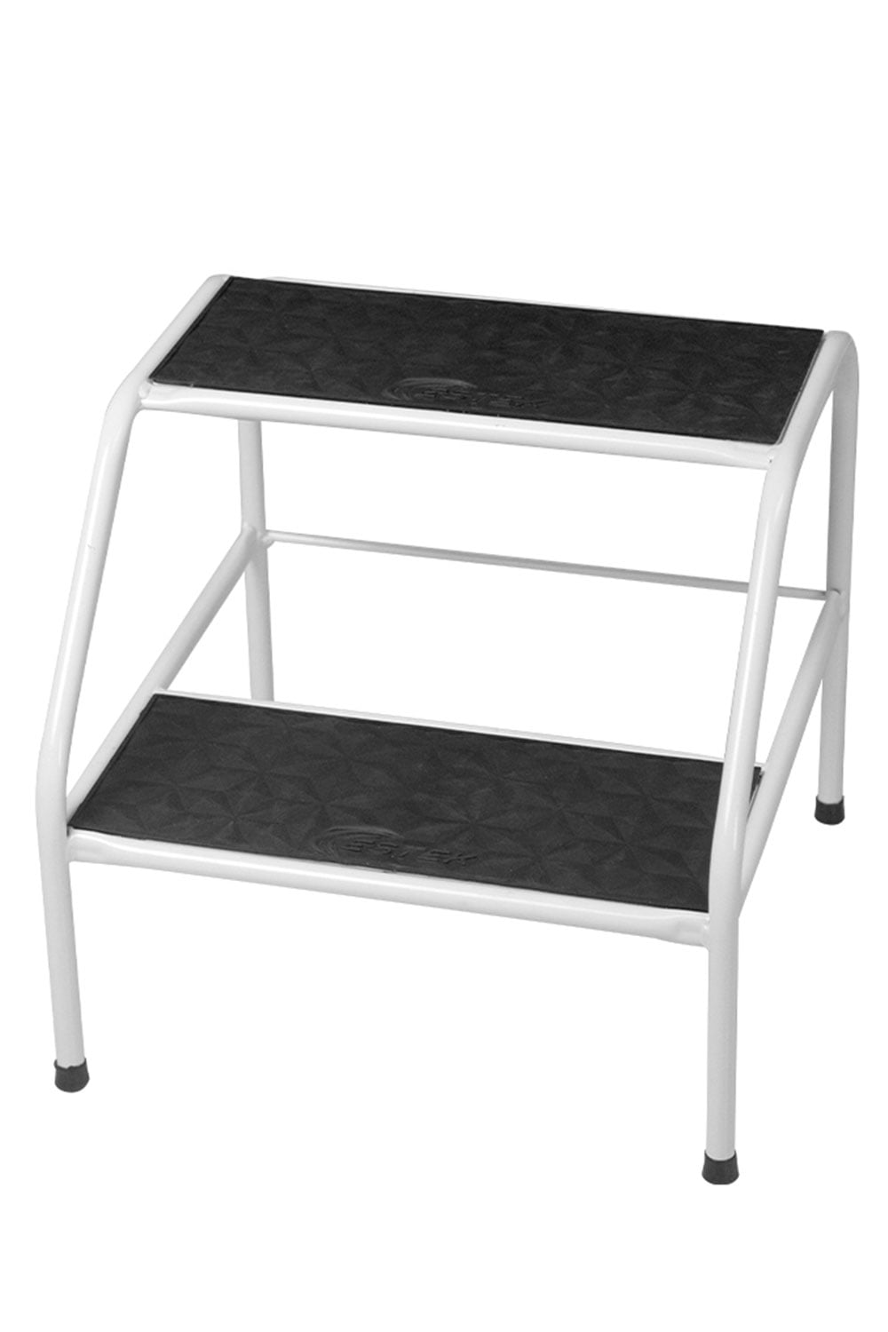A escadinha de 2 degraus é um produto desenvolvido para trazer segurança ao subir e descer de macas e poltronas fixas (macas que não possuem ajuste de altura).