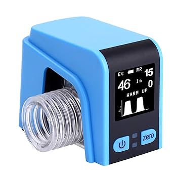 Medição contínua de EtCO₂ (dióxido de carbono expirado) e frequência respiratória.
